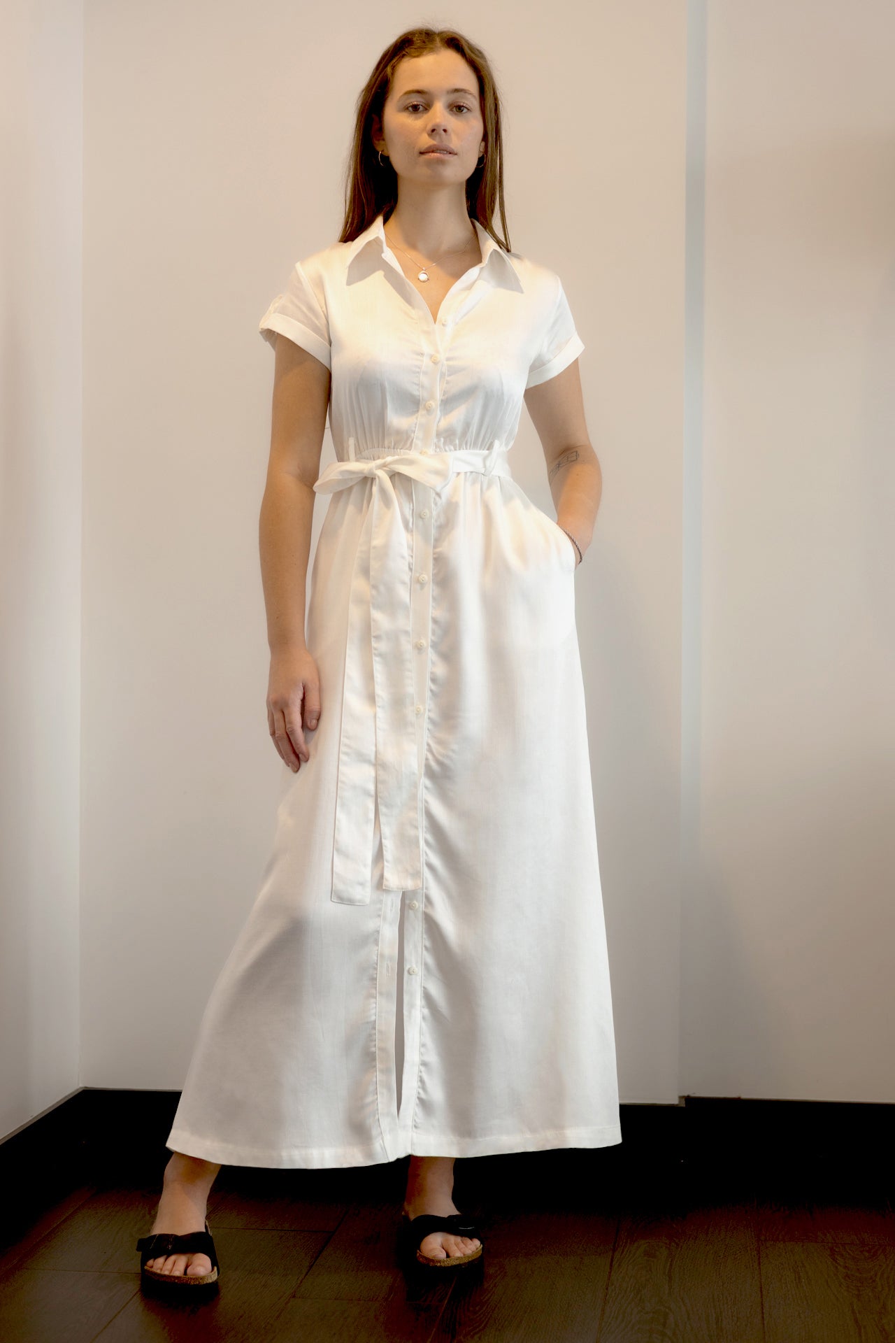 Indulge in effortless elegance with the stunning Allegra Dress, a maxi dress masterfully crafted from 100% tencel for a luxurious, soft and breathable feel. Its relaxed, fluid silhouette drapes gracefully against the skin, offering both comfort and sophistication. Style it casually with sandals and layer over swimwear for a chic beach look, or elevate it with stilettos for a touch of glamorous sophistication. Timeless and versatile, this dress is perfect for any occasion.